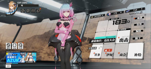 主界面经过调整后简洁明了,左上方有等级和经验值显示,点开头像还可以看到指挥官的个人信息,其他几个按钮则是设置、公告、邮件、好友这些常用功能。